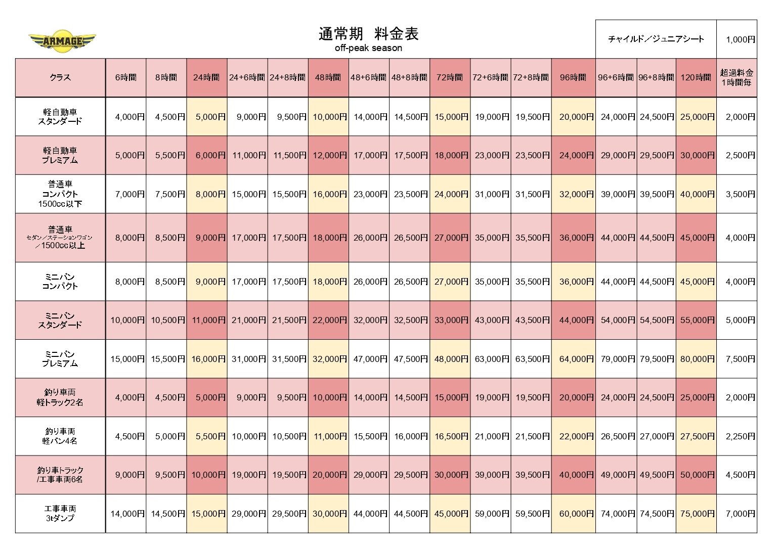 【レンタカー料金改定および車両クラス変更のお知らせ】