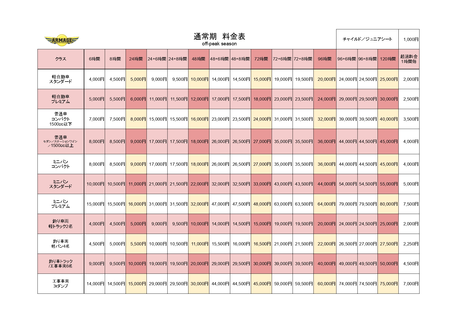 ・チャイルドシート、ジュニアシートは、一回の貸渡期間中1,000円/台です。